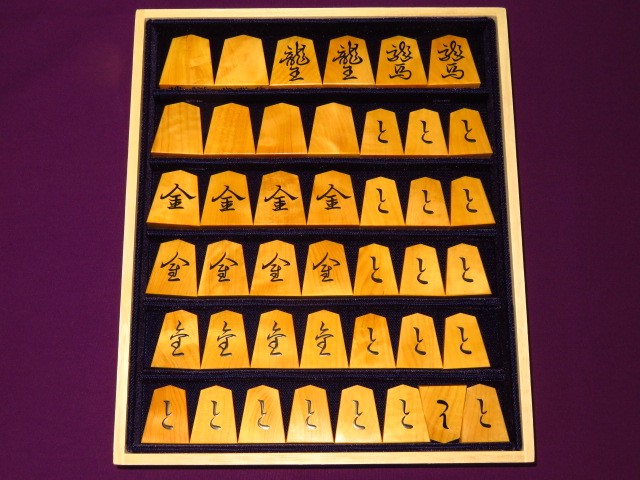 トウシン盤駒店▲芳粹作海燕島黄楊根杢盛上将棋駒▲新品/桐製平箱付